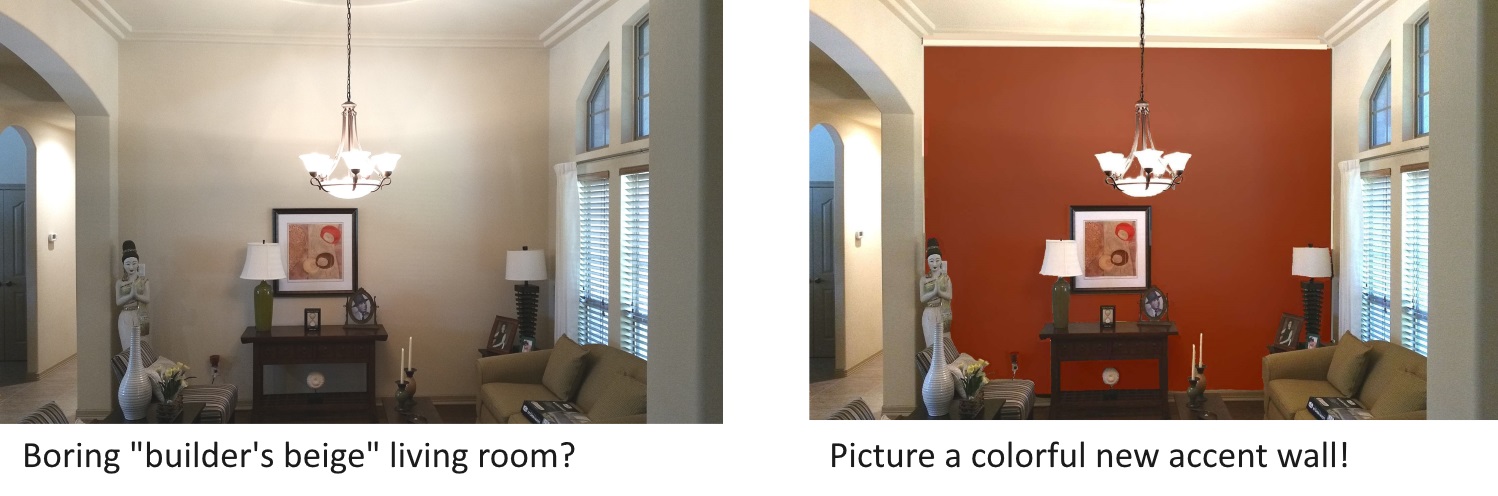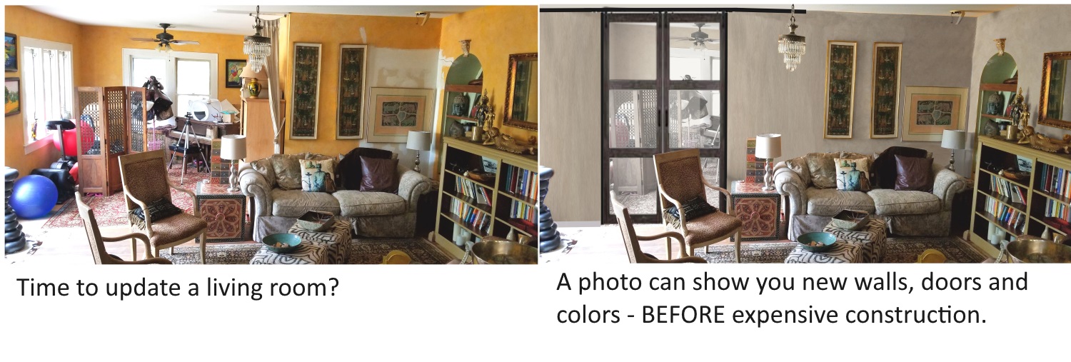 ImagineColor can help clients visualize a new color or finish for their home before painting, saving time, money, and avoiding costly mistakes. After many years in the painting business, Gretchen has an expert for color and how it works in the space. Take the guesswork out of choosing colors with a custom digital photo rendering of your personal room with your own accessories! (Photo rendering is not limited to a geographical area; you can email Gretchen your photos.)Fees for color consulting start at $75 per hour for a personal visit and/or a custom photo. Contact Gretchen for more information